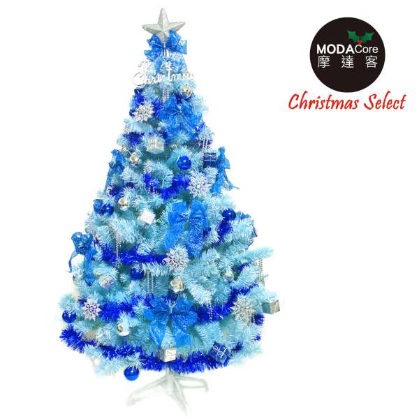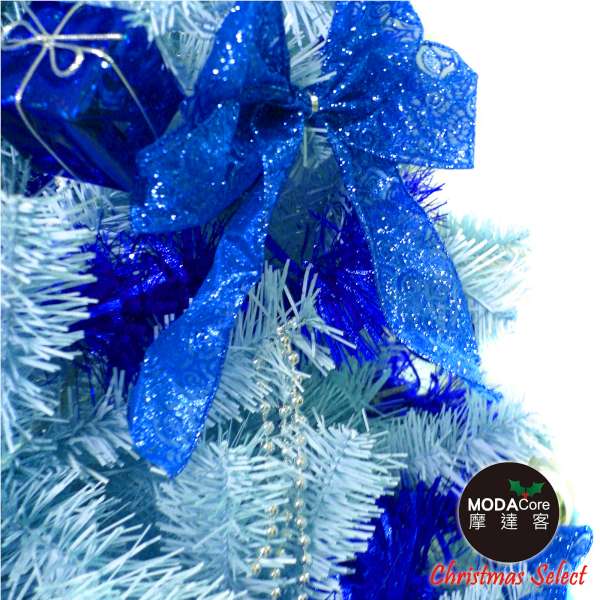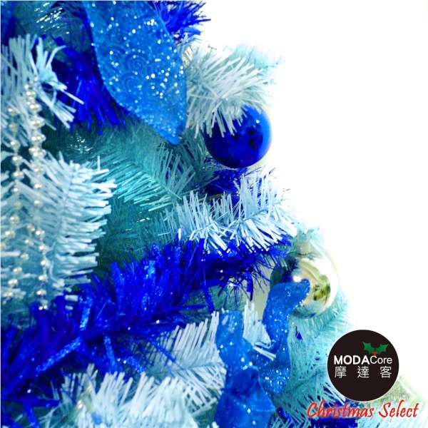 ※本商品出貨包括一株台灣製10尺豪華型冰藍色聖誕樹 如圖搭配之全套裝飾配件包 (共計262件配件)